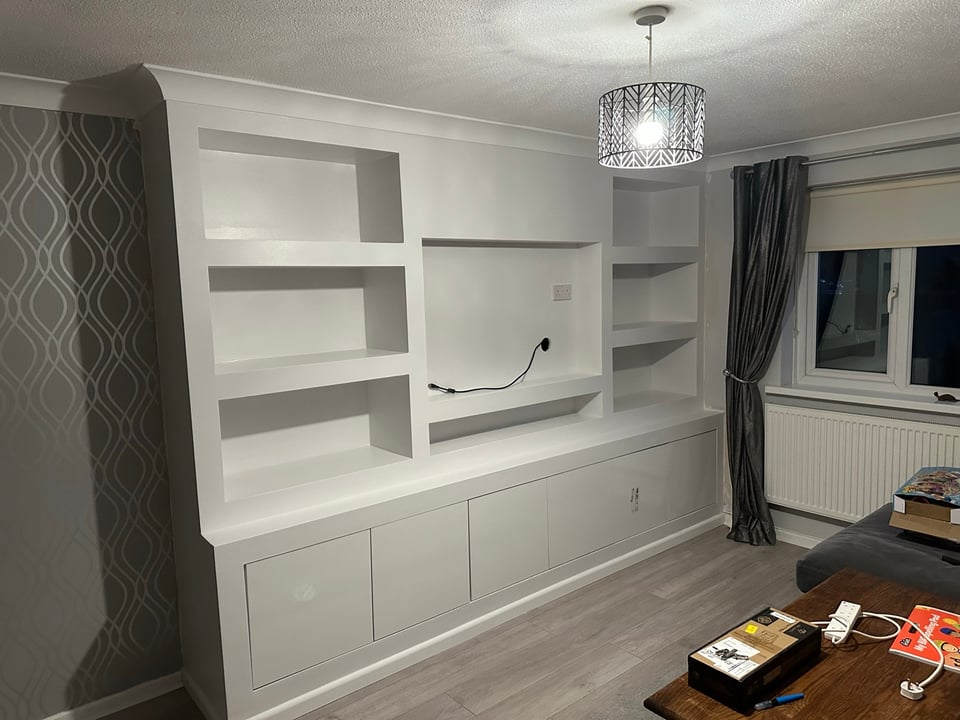 So happy with our new media wall, it looks amazing. Work carried out to a very high standard and both lads were very polite and respectful. Will definitely have them back to do the wardrobes next. Highly recommend